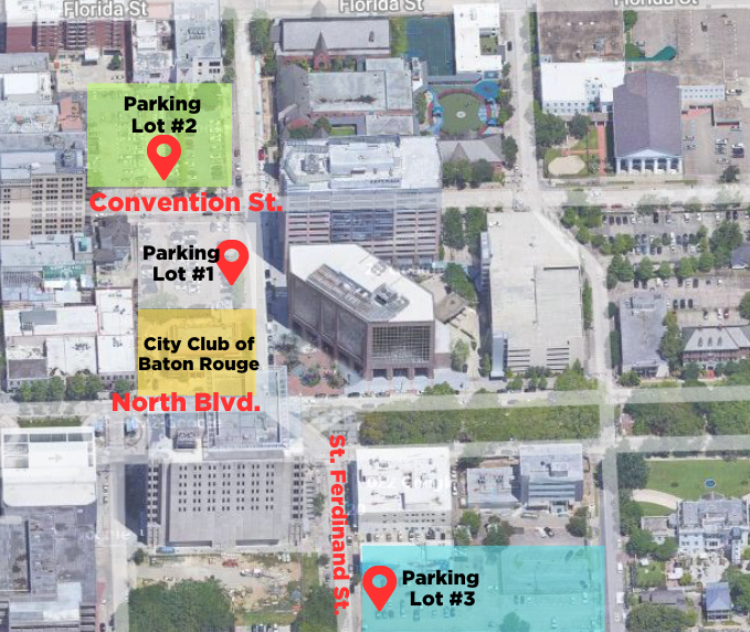- Parking Lot #1(directly behind the City Club of Baton Rouge) -